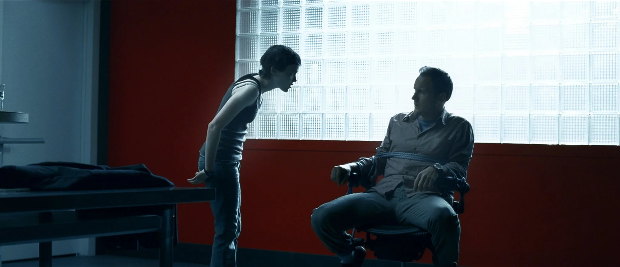 Jeff is clearly a pedophile, but he attempts to make it understood that while he is attracted to minors, he won’t commit sexual actions with them. Whether it is out of morality or for legal reasons is unclear, but it is probably a mixture of both. Jeff is a fashion photographer, and Hayley is infatuated by his occupation, subsequently convincing him to bring her to his home. After some painfully awkward exchanges that showcase a clear discrepancy in maturity due to their ages, Hayley covertly drugs Jeff, having him bound to a chair once he awakes. This is where a mental, and occasionally physical, game of cat-and-mouse begins.